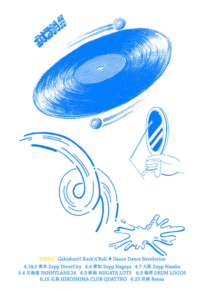 2018春ツアー「劇春!ロックンロールダンスダンス革命」 key visual and illustration for tour merch of DISH// concert tour in 2018